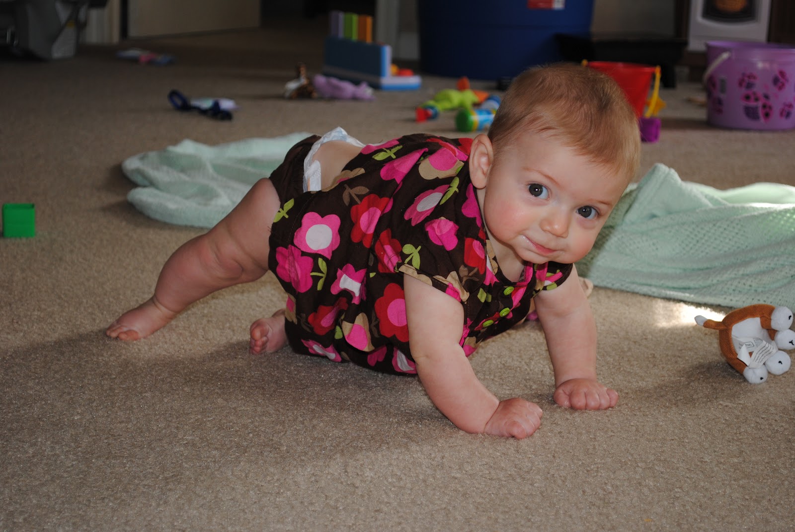 This was the very first time Elli sat up on her own unassisted. We were all there to see her and were so proud of her! Elli is 5 1/2 months in this picture.